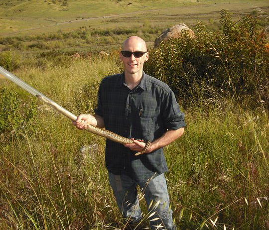 Stephen Rice in Jamul, CA capturing rattlesnakes for his work in landscape genetics.