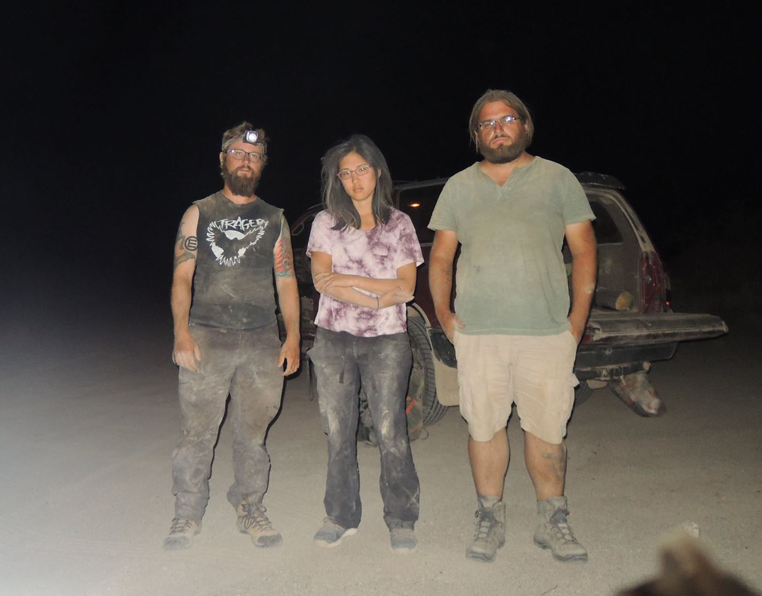 Sean Harrington, Alex Sumarli, and Sam Fellows after a long day of field work in Cabeza Prieta National Wildlife Refuge.